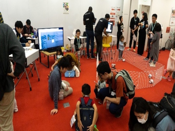 各企業によるブースのほか、現役中高生を含む協働プロジェクトのセントメリーズ・インターナショナルスクール、放課後NPOアフタースクールや、Rakuten Robot Club(同好会)、楽天技術研究所によるロボット・プログラミング・ワークショップも初出展。