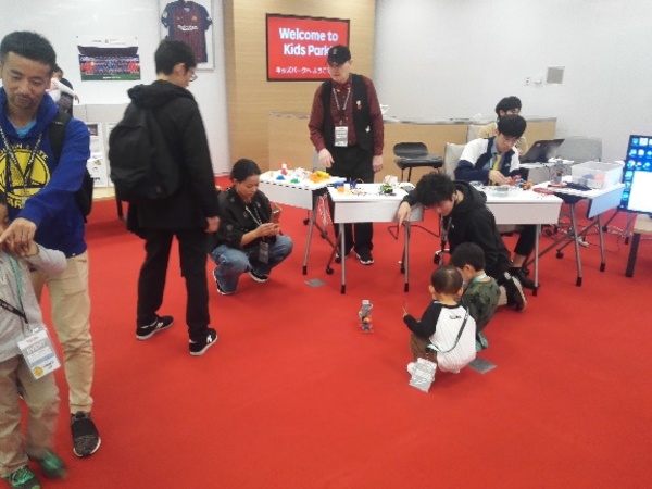 今回の楽天テクノロジーカンファレンスでは、年齢を問わずロボットやプログラミングワークショップを体験いただける『Kids Park』を開設しました。